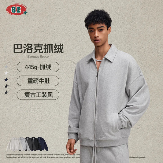 Men's Vintage Workwear Jacket 2025 Old Money Style Turn Down Collar Sweatshirt