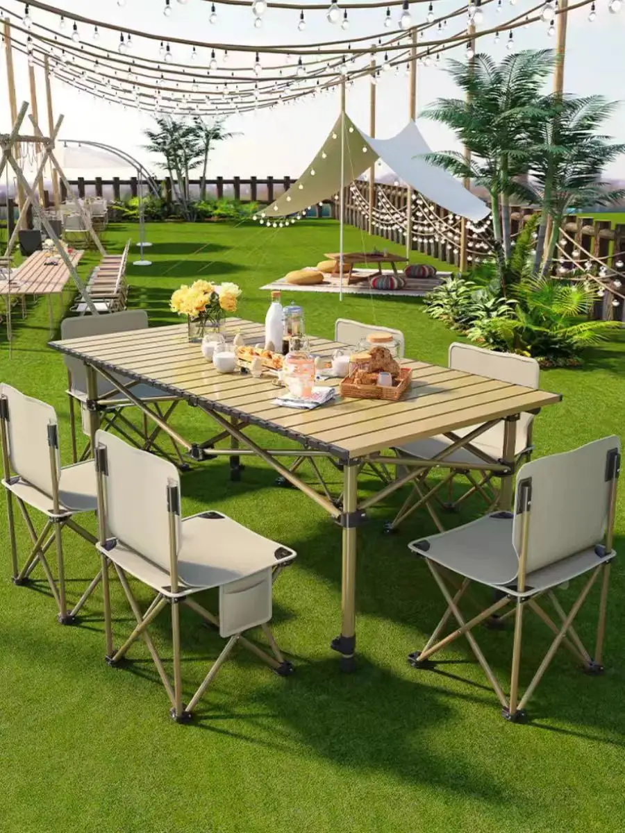 1. Camping egg Roll table,Made of aluminum alloy,One-second storage, lightweight folding table, high value, installation-free; it is very light to carry, easy to disassemble and install.